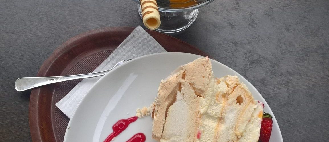 Pierwszego dnia pobytu, po długim spacerze wzdłuż wybrzeża portowego, przyszła ochota na kawę i coś słodkiego. Organizm zmęczony podróżą i długim spacerem zażądał cukru czyli energii. Byłam zaskoczona, bo ogólnie nie przepadam za słodkościami. Ale jak mus to mus. Rozpoczęły się intensywne poszukiwania miejsca, które wpadnie w oko. Idąc jedną z głównych ulic Gdyni – Świętojańską, rozglądałam się za jakimś fajnym miejscem. Mijałam sporo kawiarni, cukierni ale żadna do mnie nie przemówiła. W końcu jedna mnie zainteresowała, to Mariola Cafe Lodziarnia. Okazało się, że był to strzał w dziesiątkę. Zamówiłam kawę, torcik bezowy i mały pucharek lodów. W sumie to chciałam tylko 2 gałki, bez niczego ale moja współtowarzyszka podróży zadecydowała inaczej. Chwała jej za to !!