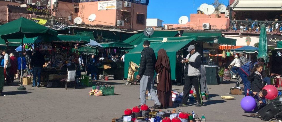 Jeśli chcesz poczuć klimat i smak prawdziwego Maroka powinieneś odwiedzić plac Jemaa el Fna w Marrakeszu… To zdanie bardzo często spotykałam w przewodnikach, poradnikach czy relacjach osób odwiedzających to państwo. Nie pozostało mi więc nic innego jak sprawdzić to największe targowisko. Znajduje się w medinie, czyli starej arabskiej dzielnicy położonej w centrum miasta. Na swój sposób to miejsce magiczne jednak panuje tu taki chaos, ze pierwszego dnia nie byłam w stanie zobaczyć niczego. Ogrom atrakcji, zapachów, stoisk, tresowanych zwierząt, lokalnych usług, etc… przyćmiewał wszystko. Tak naprawdę zobaczyłam wiele i nie zobaczyłam nic. Dlatego też wracałam tu kilkakrotnie za każdym razem odkrywając coś nowego.