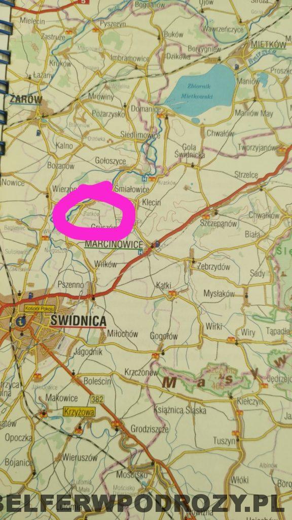 Na pierwszą wyprawę wybrałam miejscowość oddaloną o 10 kilometrów od centrum mojego miasta – Świdnicy. Dotrzemy tutaj zjeżdżając z DK 35 ( z kierunku Wrocław – Świdnica) w prawo w miejscowości Pszenno. Jedziemy około 6 kilometrów i po przekroczeniu tabliczki z nazwą miejscowości wypatrujemy po prawej stronie ruin zamku.
