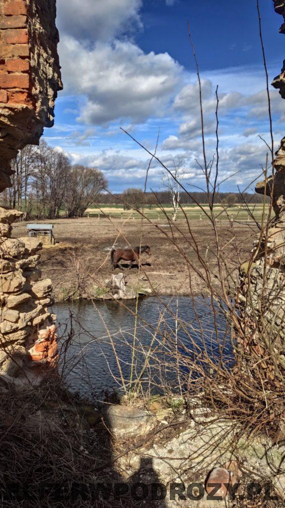 Tuż obok zamku znajduje się zabudowa dawnego folwarku z XIX wieku, gdzie dziś mieści się stadnina koni Państwa Mazurek. Możemy tu skorzystać, między innymi z jazdy konnej.