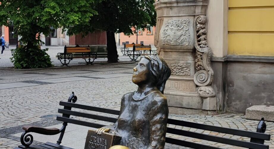 Będąc na świdnickim rynku zapewne zauważycie pewna damę, które siedzi na ławeczce, tuż przez wejściem do Muzeum Dawnego Kupiectwa.