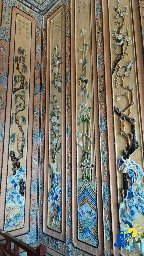 Zresztą cały lud nie darzył go sympatią, nie dość, że był wybrany przez francuskich kolonizatorów, to jeszcze wprowadził w życie alfabet łaciński w miejsce używanego od wieków alfabetu chińskiego. Na dodatek by zbudować sobie grobowiec podniósł podatki o 30%! Efekt końcowy jest jednak godny podziwu, ściany ozdobiono misternymi ozdobami z kolorowego szkła i ceramiki i dostrzec wśród nich można drzewa symbolizujące 4 pory roku.
